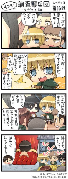 アニメ 進撃の巨人 公式アカウント على تويتر ちみキャラによる4コマ漫画 4コマ 調査兵団 リヴァイ班 Season3第22話を公開 本編の緊迫した展開とは打って変わったゆる可愛い世界観をお楽しみください 皆様 ご視聴ありがとうございました Shingeki